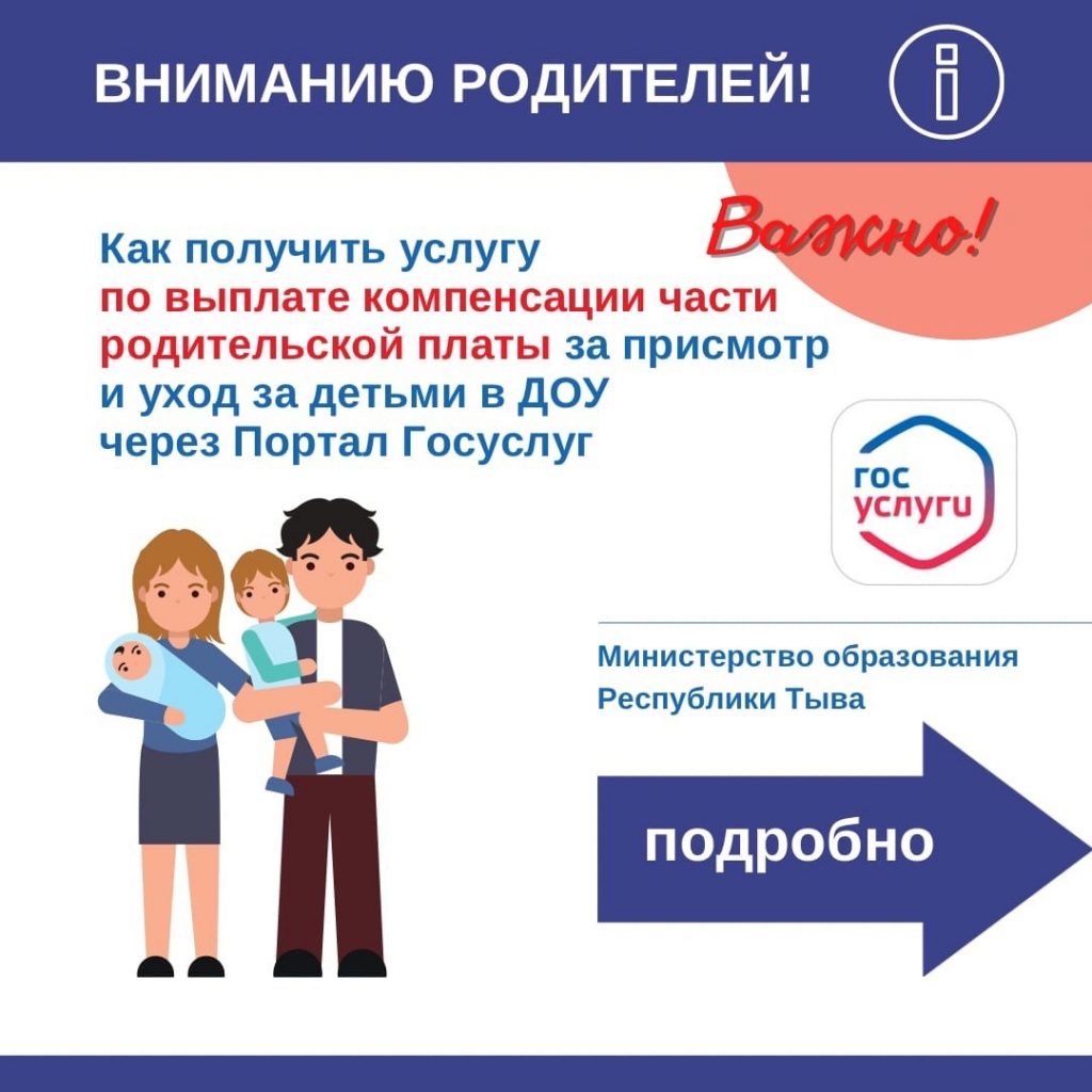 🔥 Уважаемые родители! Теперь Вы можете подать заявление на выплату компенсации части родительской платы за присмотр и уход за детьми в дошкольном учреждении через Портал Госуслуг https://www.gosuslugi.ru/ ! Пошаговую инструкцию как это сделать смотрите в наших инфокарточках 👇👇👇 #ДОУ_РТ #родплата #госуслуги #минобразованиятыва #важно #компенсация