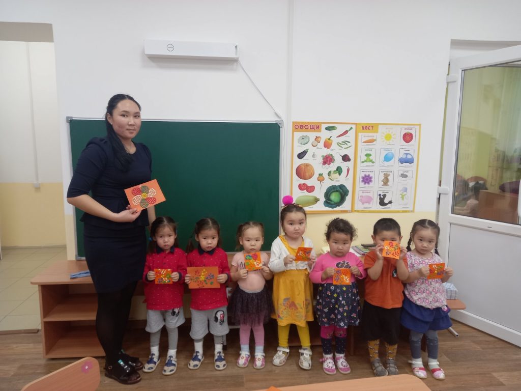 Новости 02.12.2021 / «Белек» уруглар садынын 2ги бичии болуу инвалидтер хунунге тураскааткан неделяда уругларга «Цветик-семицветик» деп аппликацияны кылганнар.